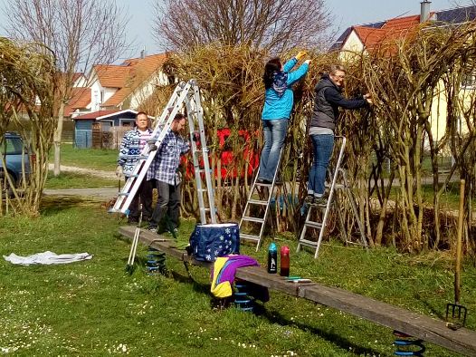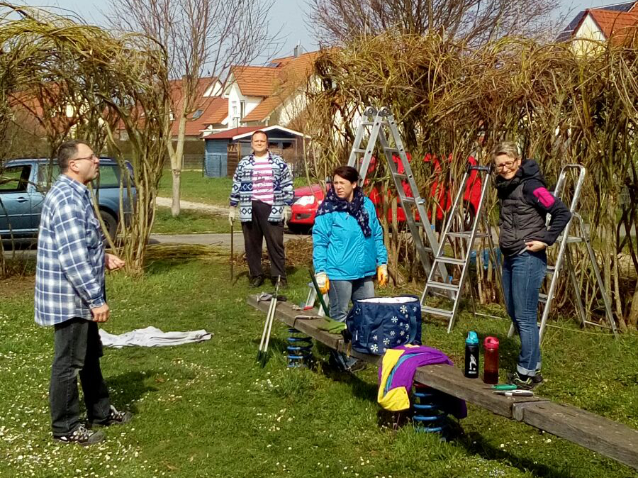 Auch in diesem Jahr hat die Compakt – Liste Karlskron (CLK) bei der Karlskroner Ramadama-Aktion wieder den Weidenspielplatz hergerichtet. Die CLK-Helfer brachten den Weidentunnel und das Weidentipi wieder in Form und setzten neue Triebe in die Lücken ein. So können die Kinder sie wieder optimal nutzen.